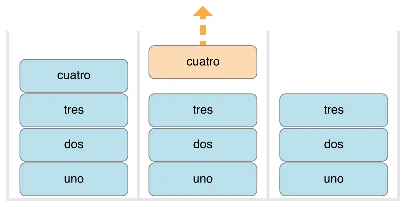移除并返回栈顶部的值“cuatro”,即出栈: