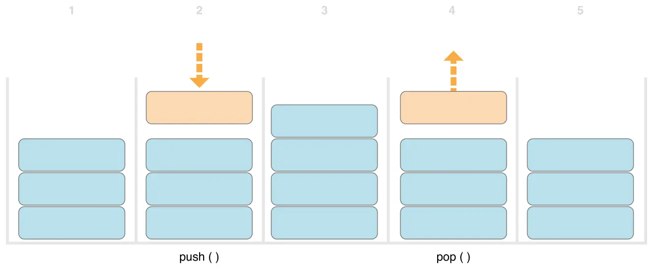 - 现在栈中有四个值,最近入栈的那个值在顶部。