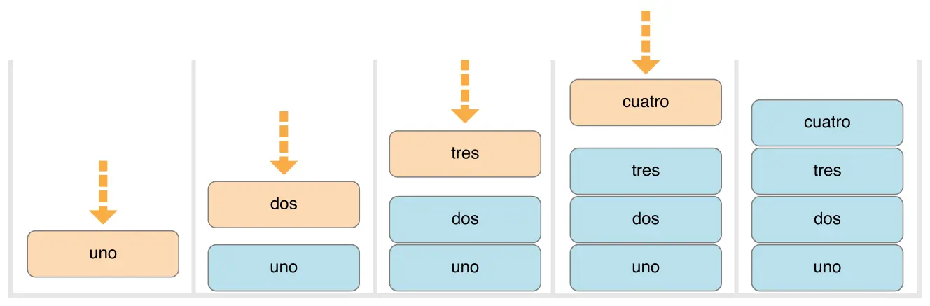 下图展示了 stackOfStrings 如何将这四个值压栈: