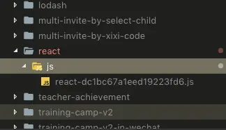 项目中有 前端目录,前端目录下有多个入口(每个入口进行单独的打包),通过 webpack splitchunk 插件,每次打包时,都会把所有入口的 react 库独立抽离出来,抽离后的文件命名为 chunkname.contenthash.js;