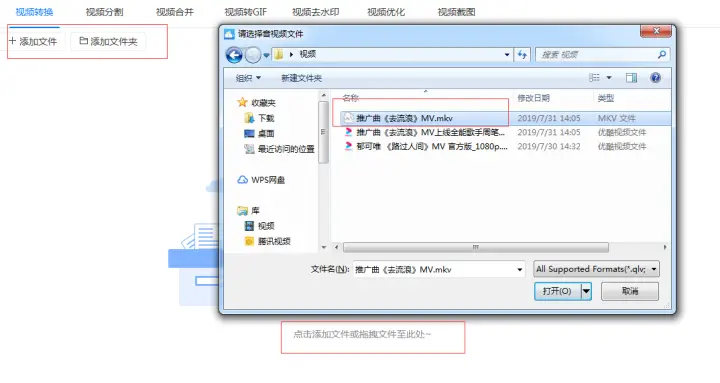 1、首先要打开迅捷视频转换器把mkv格式的文件添加到软件。添加时可以点击软件左上角的“添加文件”/“添加文件夹”按钮,也可以用拖拽的方式直接把mkv格式的文件添加到软件中。这多种方式都支持批量添加,可以根据习惯选择添加方式。