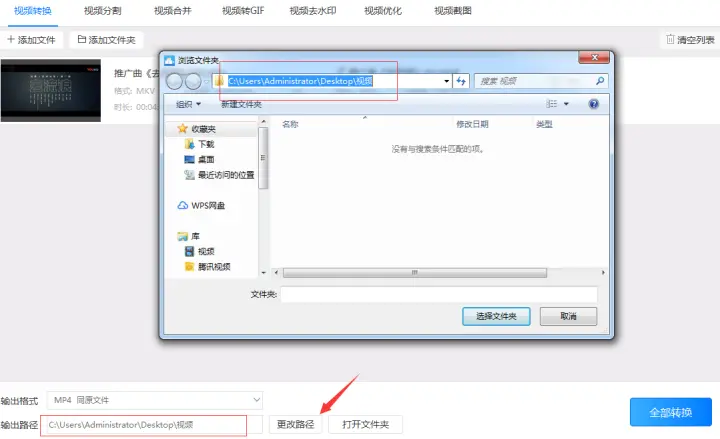 4、自定义好输出格式后设置“输出路径”,设置时可以在输出路径的输入框中直接填写路径也可以把路径粘贴到输入框中,或者直接点击“更改路径”按钮选择视频需要输出到电脑的路径。