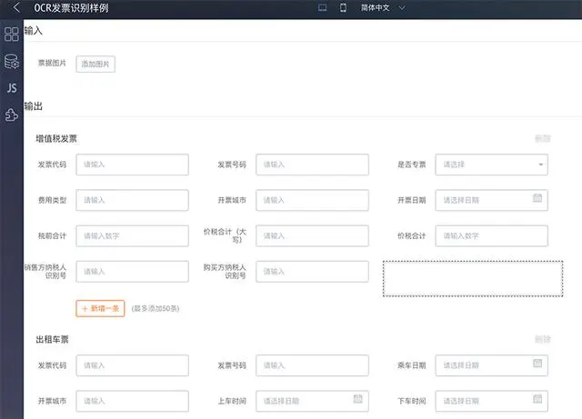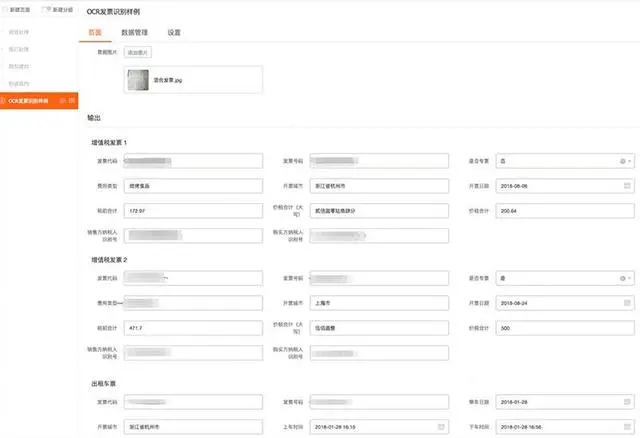 通过宜搭,用户在5分钟内即可完成OCR部署。一张图上不仅能同时识别出多种不同类型的票务信息,还能按照信息类别自动分类,结构化输出结果。更重要的是,阿里自研的OCR在算法定位与识别上,准确率都超过99%以上。