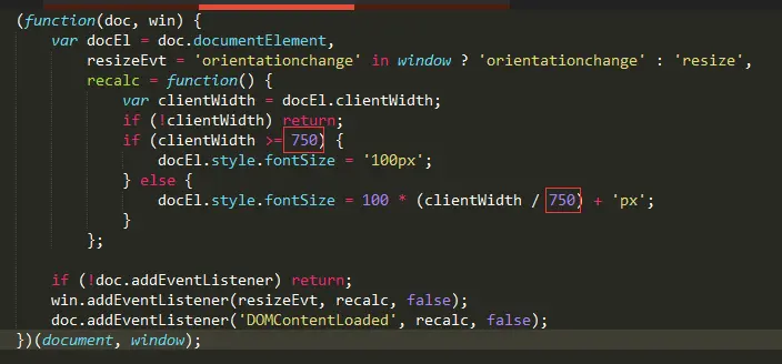 docEl.style.fontSize = 100 * (clientWidth / 750) + 'px';