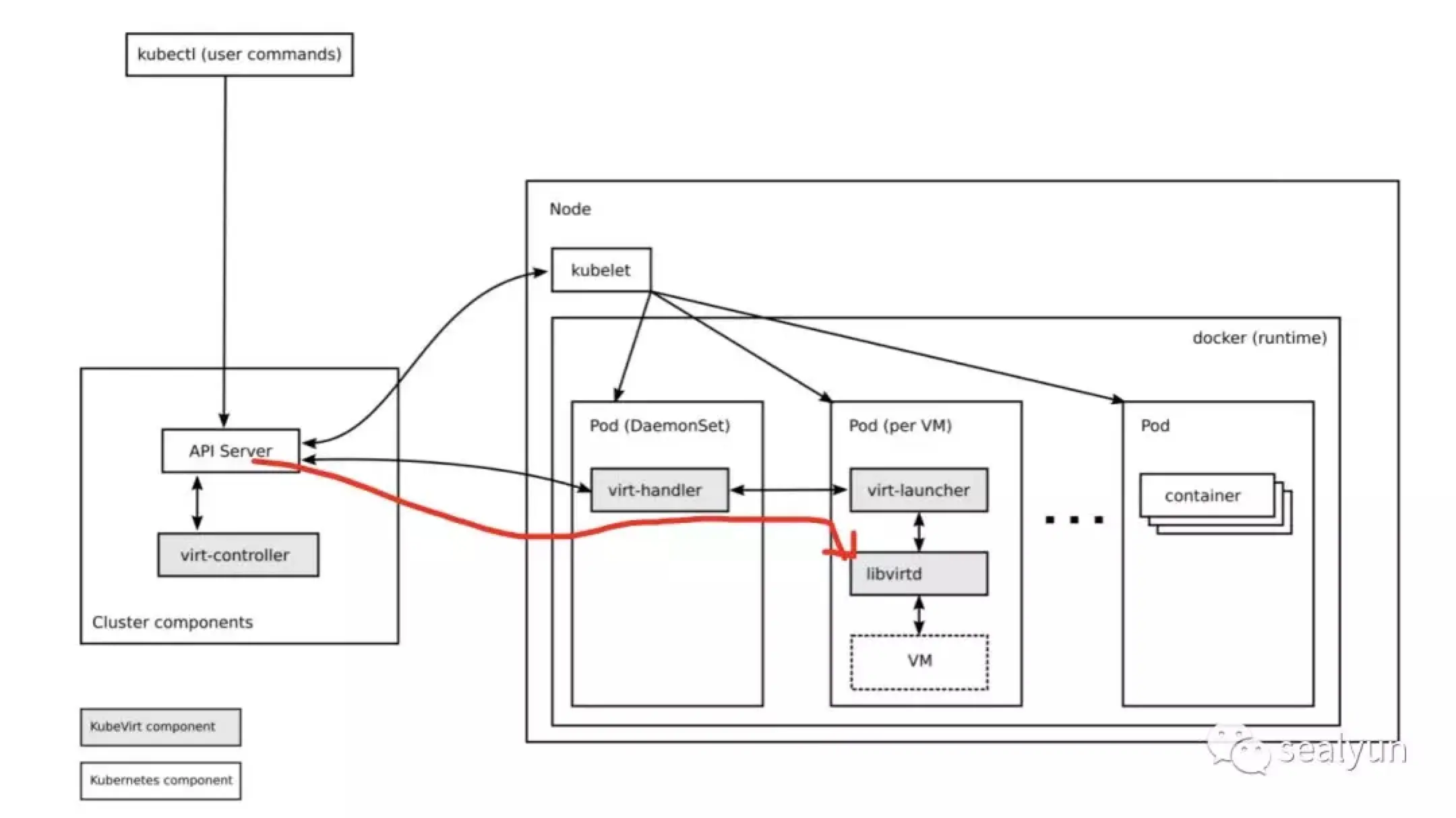kubevirt简介 以上都是轻量级虚拟机,然而对于亡openstack之心不死的人还是希望搞出个能管理重量级虚拟机的东西,kubevirt应运而生。