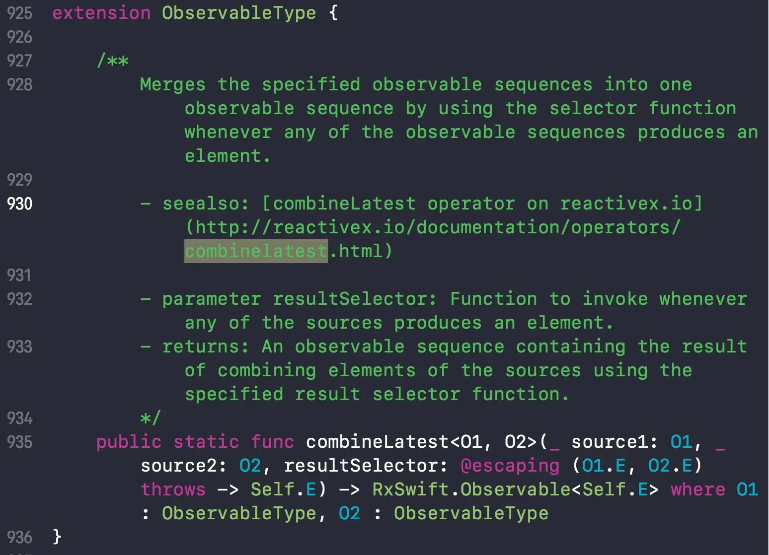 找到 combineLatest 函数。