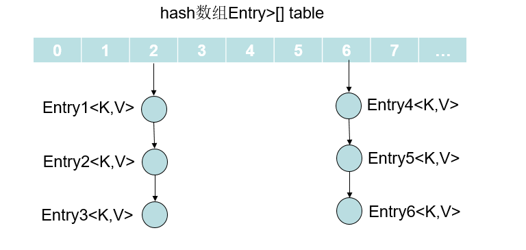 jdk1.7的HashMap采用数组+单链表实现,尽管定义了hash函数来避免冲突,但因为数组长度有限,还是会出现两个不同的Key经过计算后在数组中的位置一样,1.7版本中采用了链表来解决。