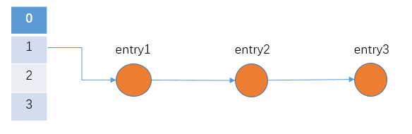 这个方法的主要部分就是,在重新计算hash之后对于原链表和新table中的链表结构的差异,我们通过下面这个简单的图理解一下,假设原table中位置为4处为一个链表entry1->entry2->entry3,三个结点在新数组中的下标计算还是4,那么这个流程大概如下图所示