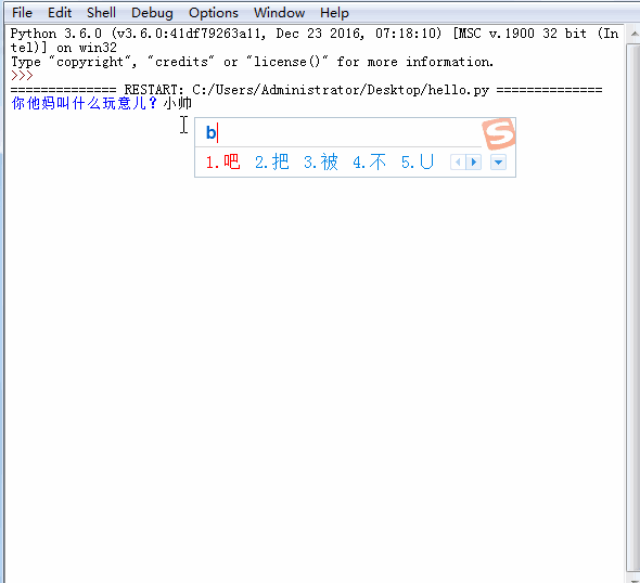 接着我们就可以来运行我们的程序了,在我们的 IDLE 中用力的按一下 F5 开始运行程序: