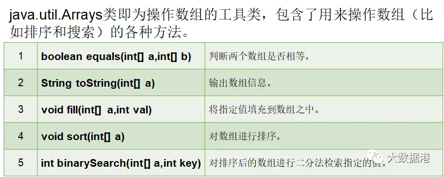 int[] ns = {5,2,30,4,1,90}; int[] ns2 = {5,2,3,4,1}; //比较两个数组是否相等 : 比较的是内容,个数,顺序 boolean equals = Arrays.equals(ns, ns2); System.out.println(equals);