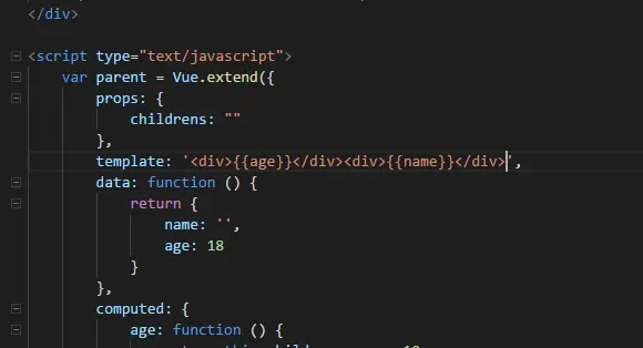 template: '<div><div>{{age}}</div><div>{{name}}</div></div>',