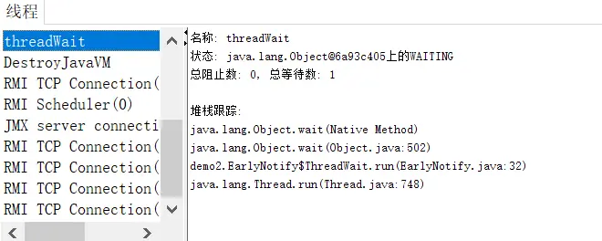- 等待阻塞(obj.wait()->进入wait set):即运行中的线程执行wait方法(前提是需要获得对应的某个monitor,如果没有会抛出异常),JVM会将该线程放入等待队列中
