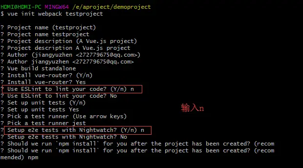 以下是我的配置,标红的是手动输入n回车的,其他项默认回车
