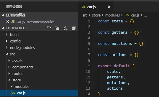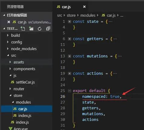 请确保模块car.js里设置命名空间namespaced: true,查看上文的设置