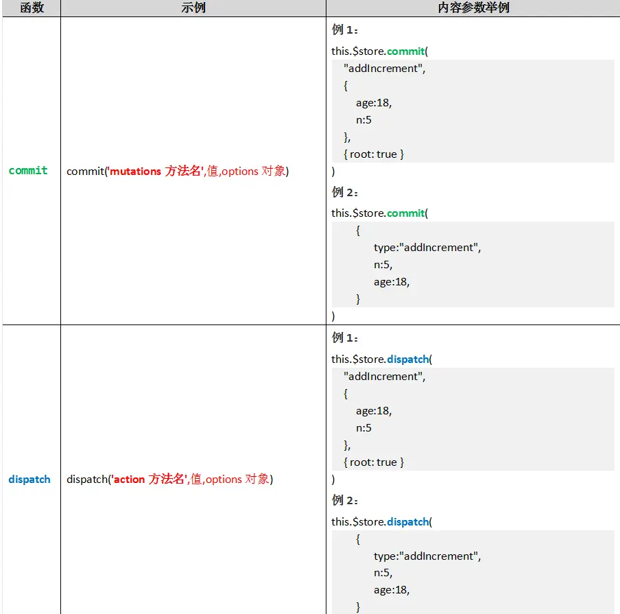 - this.$store.commit("addIncrement",{age:18,n:5},{ root: true })
