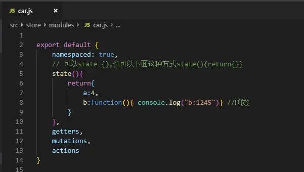 其中,在modules模块中,state可能是函数state (){},请看api文档查阅模块重用详情