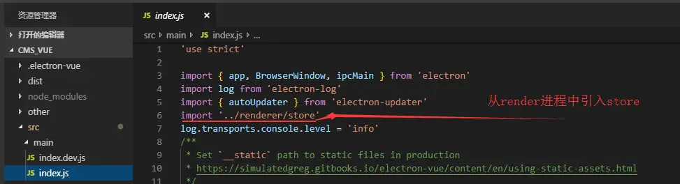 (如果不在主进程中引入store,会导致vuex的store修改无效)