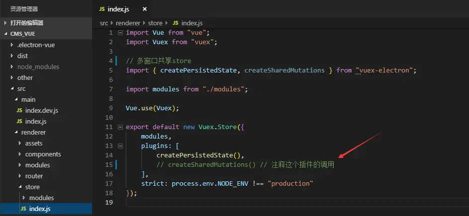 进入store文件夹目录下的index.js,注释createSharedMutations(),