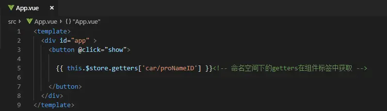 例如标签中 <div> {{ $store.getters.car.nameID(8) }} </div>