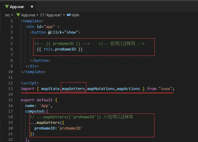 使用辅助函数mapState()、mapGetters()等传递参数是通过触发方法传递的