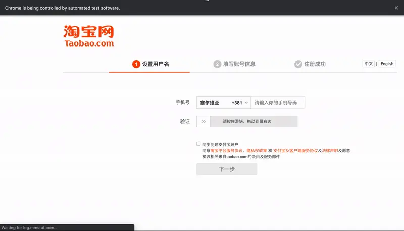 在实际的案例中,我们可以以淘宝的注册界面为例: