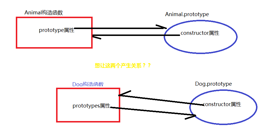 然后,将Dog的prototype对象,然后指向Animal的prototype对象,这样就完成了继承。
