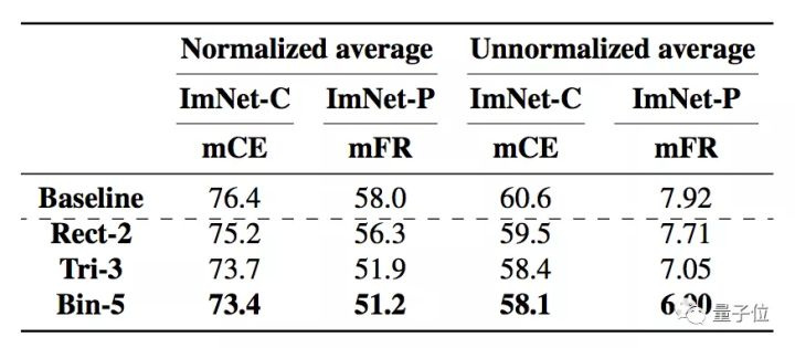 数据显示,各种滤波器都能有效增强,应对干扰的稳定性,和应对图像损坏的鲁棒性。其中,最强的过滤器Bin-5表现最佳。