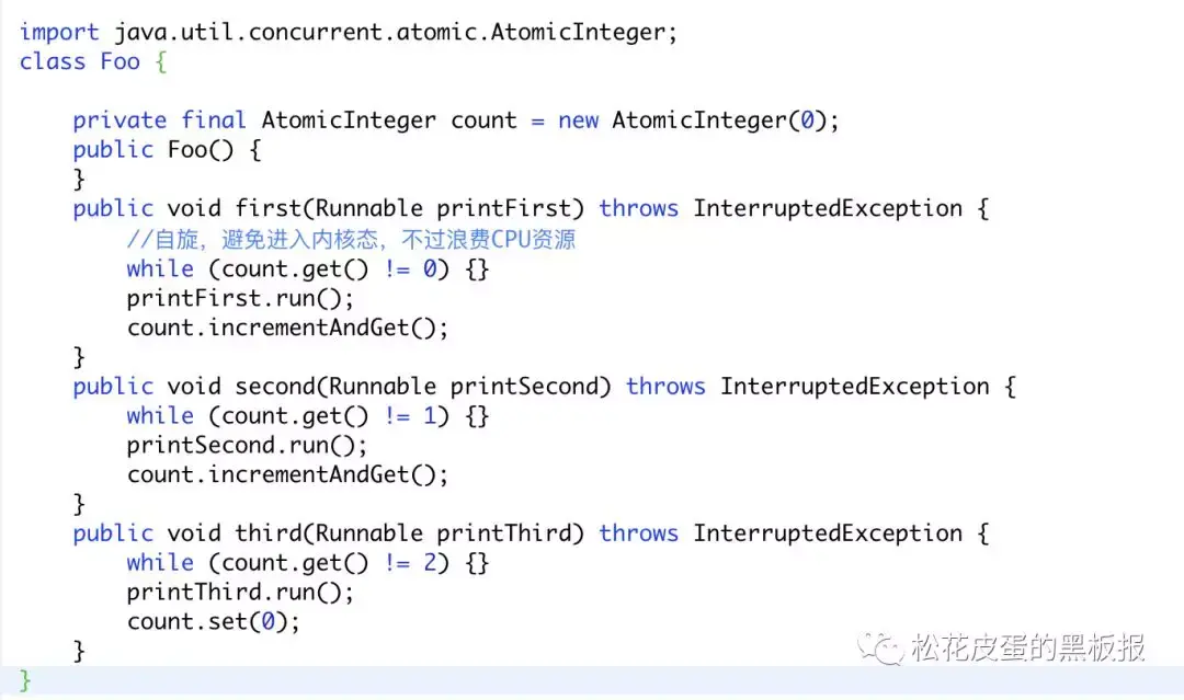 方法2:原子类AtomicInteger。AtomicInteger是一个提供原子操作的Integer类,通过线程安全的方式操作加减