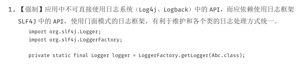 我们为什么要在实际的应用中去使用SLF4J的API呢? 在阿里巴巴的开发手册上也给我们明确【强制】规定了