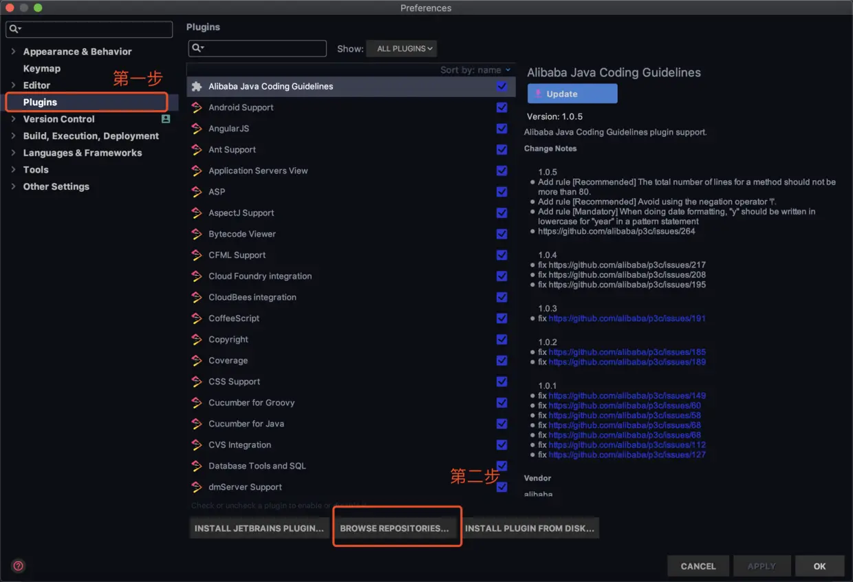 然后打开IDEA的设置项,在Plugins中查找: