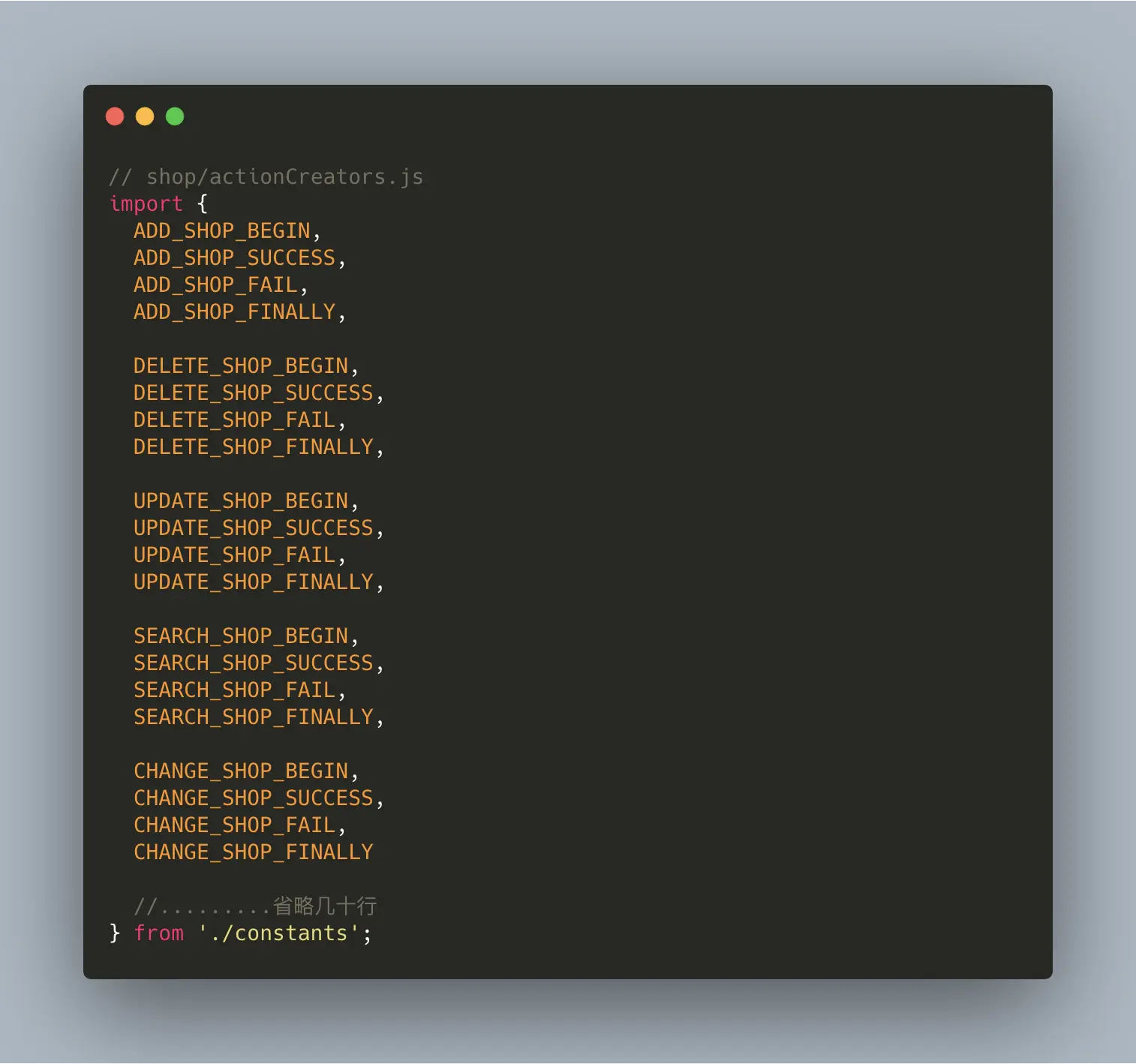 shop 模块子业务的 actions.js 则负责整合所有的 action 导出。