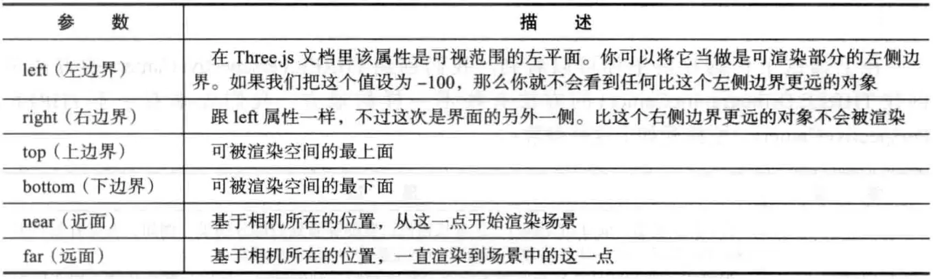 near(近面) near属性定义的是Three.js 库从距离相机多近的地方开始渲染场景。