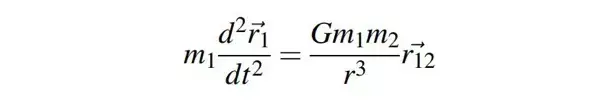 在这里,G为万有引力常数,m₁和 m₂为两物体的质量,r为物体间的距离。单位向量从m₁指向 m₂ 并且力的作用方向也是相同的。