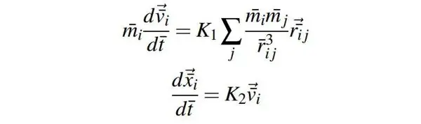dv1bydt=K1*m2*(r2-r1)/r12**3+K1*m3*(r3-r1)/r13**3