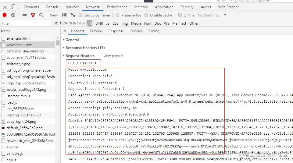 5.依次第一二部分展示在请求头里面;第四部分响应在响应头和响应预览查看