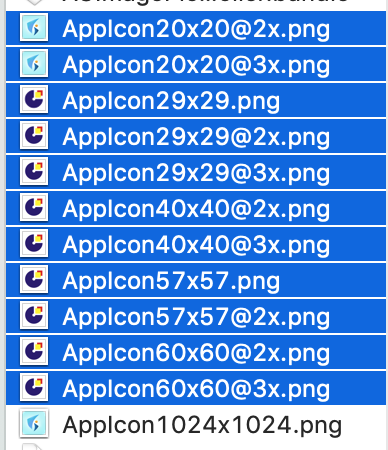 • AppIcon的名字一定要对应上!因为后面命令行cp时要全部替换,否则难以预测会出现什么问题,就像下图。(笔者的项目中,只弄了60@2x和60@3x的图。)