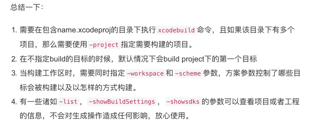 输入xcodebuild -h可以查看帮助。