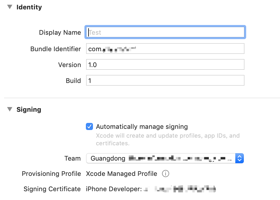 大家这时候可以新建一个项目Test。然后在Xcode中,把公司项目(有证书)的Bundle Identifier复制过来,这时候你会发现证书匹配通过了。(如果你没有证书,那看回证书知识,弄好再往下看)有了这个项目,就可以感受这些命令了。