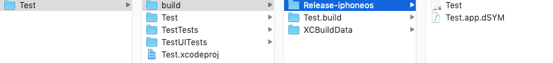 不出意外,会打印以上文字,包括签名身份和配置文件。文件夹下有Test/build/Release-iphoneos/Test.app.dSYM。