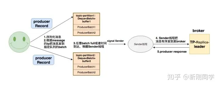 3.Sender把消息有序发到 broker(tp replia leader)