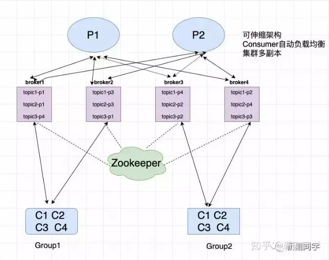 - Controller在Zookeeper上注册Watch,一旦有Broker宕机,其在Zookeeper对应的znode会自动被删除,Zookeeper会触发 Controller注册的watch,Controller读取最新的Broker信息