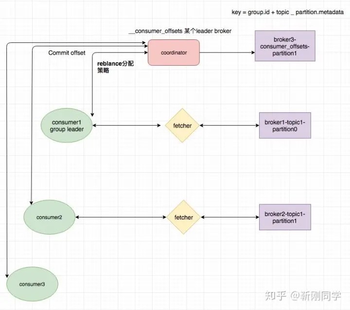 - 每个consumer group在broker上都有一个coordnator来管理,消费者加入和退出,以及消费消息的位移都由coordnator处理。