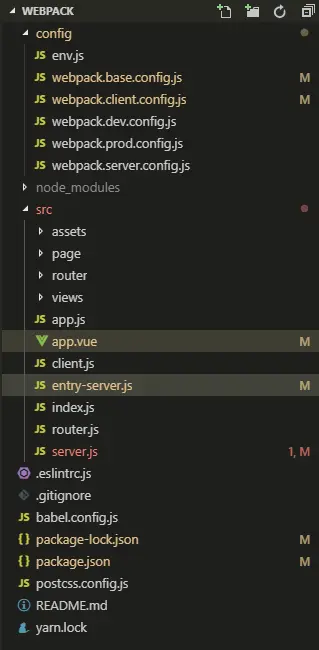 config是配置目录,src是vue的目录,其中src目录下的server.js、client.js、entry-server.js、router.js不需要,这些属于ssr的配置部分,不在本次范围内。