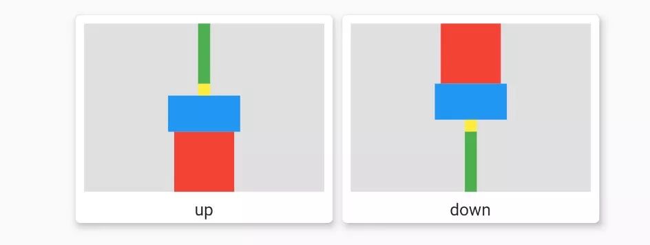 1testVerticalDirection(){ 2 var redBox= Container( 3 color: Colors.red, 4 height: 50, 5 width: 50, 6 ); 7 8 var blueBox= Container( 9 color: Colors.blue,10 height: 30,11 width: 60,12 );1314 var yellowBox= Container(15 color: Colors.yellow,16 height: 10,17 width: 10,18 );1920 var greenBox= Container(21 color: Colors.green,22 height: 50,23 width: 10,24 );2526 var verticalDirection =[VerticalDirection.up,VerticalDirection.down];2728 var show = MultiShower(verticalDirection,(e){29 return Flex(30 direction: Axis.vertical,31 verticalDirection: e32 children: <Widget>[redBox,blueBox,yellowBox,greenBox],3334 );35 },color: Colors.black12,width: 200,height: 140);3637 return show;38}