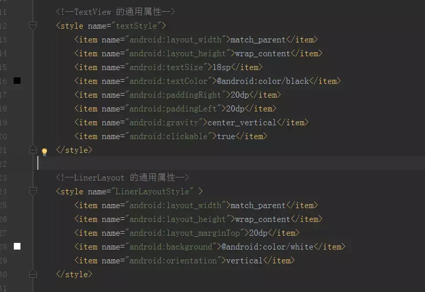 第三点:合理使用style文件,定义各个控件的通用属性,减少重复代码。