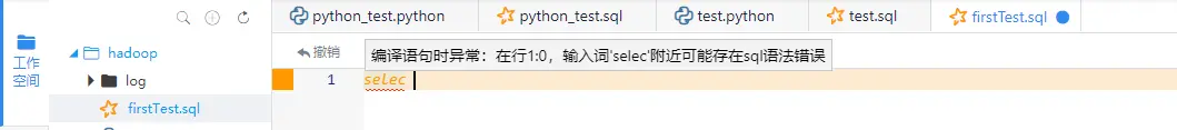 新建一个SQL类型的脚本,写入第一个查询数据库的函数,编写代码时会自动解析语句,出现错误会给出错误定位,具有了IDE的一个优良特性,开发起来也非常舒适