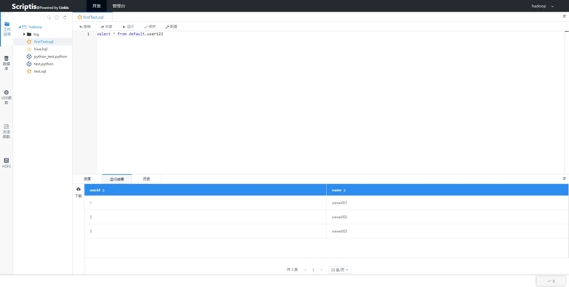通过测试了一个小案例,除了验证了基本的功能以外,惊喜地发现Scriptis还有许多圈粉的小细节,虽然没有在官方文档中出现,但在使用的过程中还是能感受到到开发者的细心和周到。