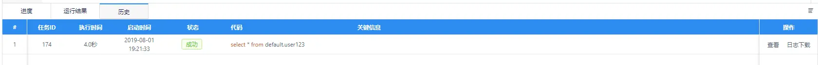 在运行结果的旁边有着运行的历史记录,可以看到任务执行的ID和时间,以及任务耗时,突然发现在旁边还有非常人性化的日志查看和日志下载,可以说非常方便了