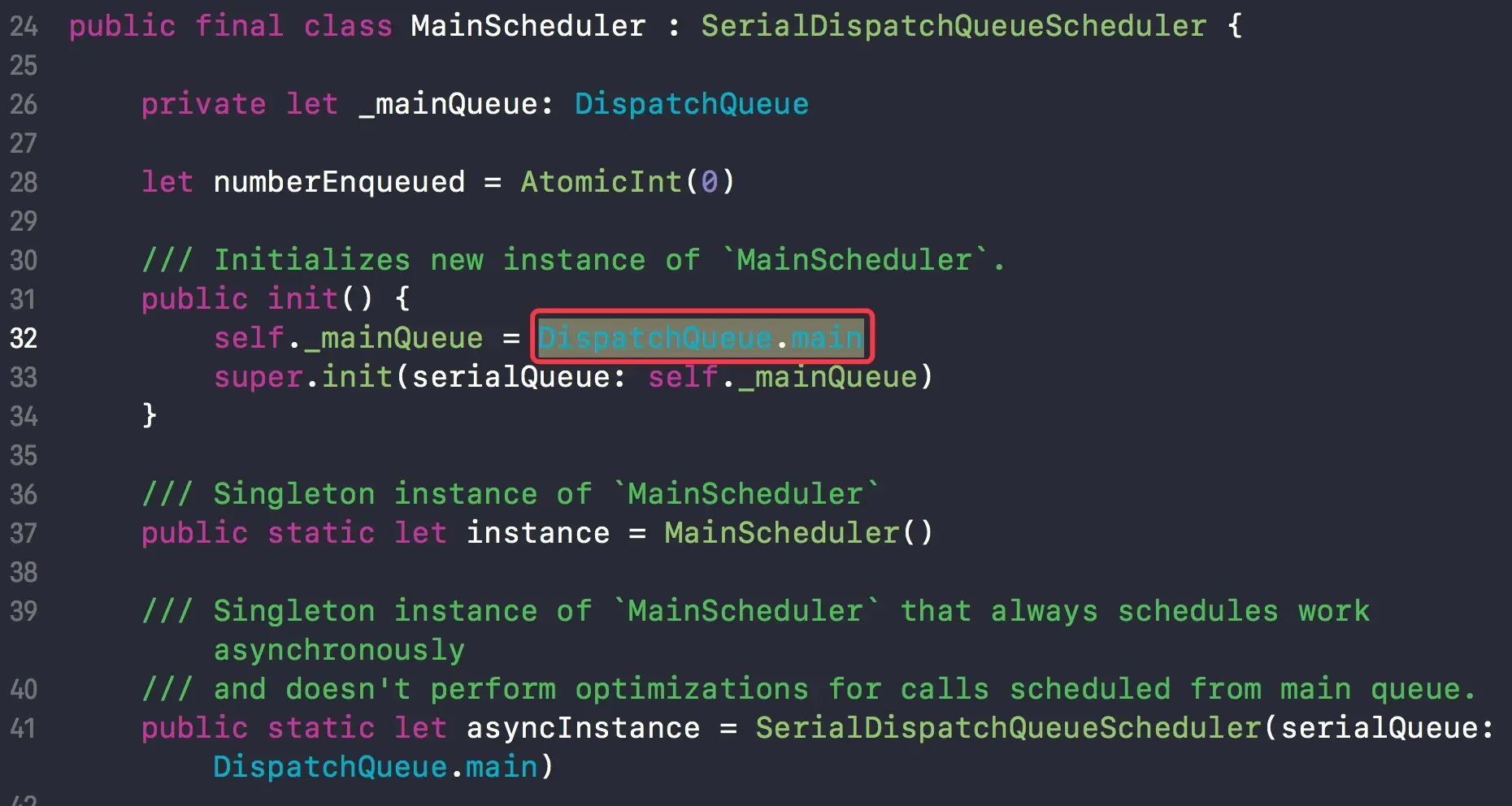 MainScheduler 对象的内部,绑定了主队列 DispatchQueue.main。
