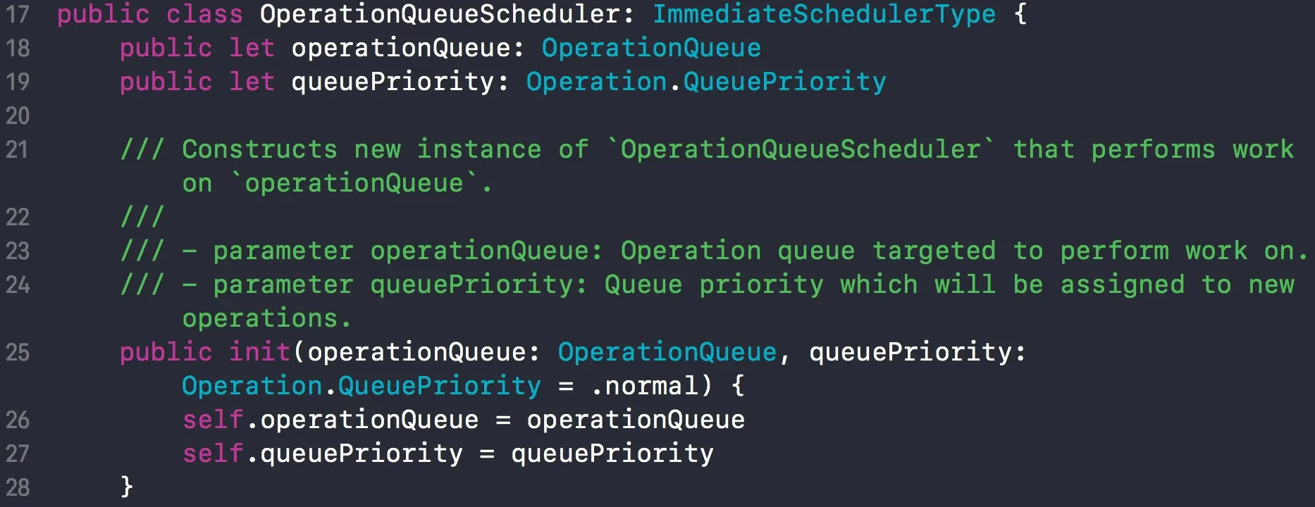 OperationQueueScheduler 对象时,需要传入 OperationQueue 和 优先级queuePriority,作为初始化参数。